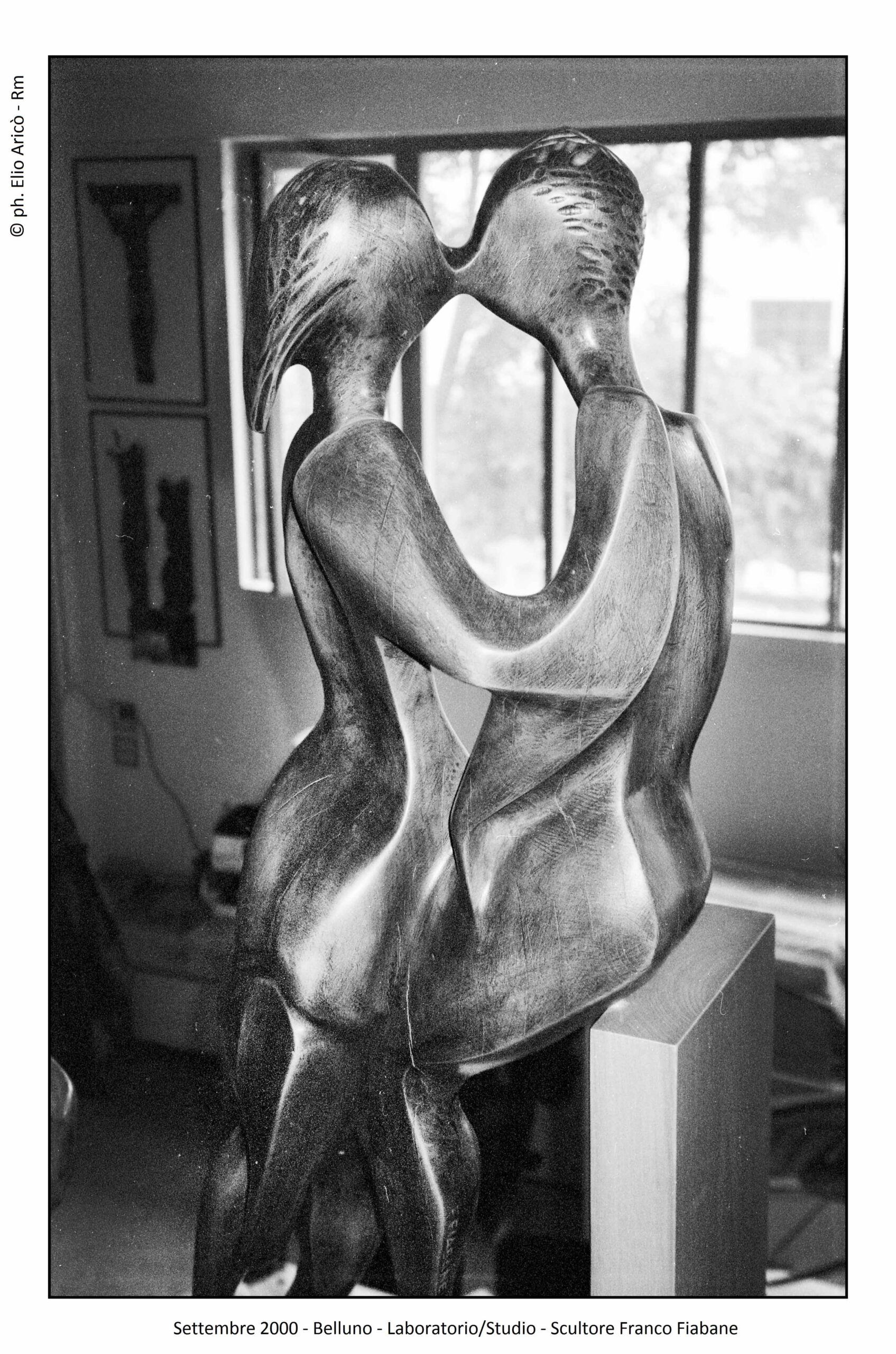 Nuove fotografie di Elio Aricò, fotografo e amico dell’artista Franco Fiabane Le nuove immagini di Elio Aricò nascono da un incontro del 18 agosto, occasione per visitare due collezionisti legati a Franco Fiabane da un rapporto di autentica amicizia. Qui l’artista non è il Maestro celebrato, ma l’amico accolto con affetto. Tra le opere spiccano un nudo ligneo di forte intensità e il tagliere-scultura custodito all’agriturismo Bon Tajer di Lentiai: un contadino e una contadina in un momento di riposo, immagine semplice e potente che richiama l’atmosfera di Novecento di Bertolucci. Le fotografie di Aricò raccontano questo intreccio di arte, memoria e relazioni umane.