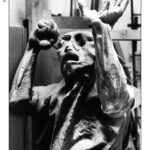 Altra importante serie di immagini, riapre il dialogo silenzioso tra l’artista e la sua opera. Elio Aricò testimonia il lavoro di Franco Fiabane, documentando una fase centrale e delicata della lavorazione di un Nudo femminile in legno, iniziato nel 2012 e portato avanti negli anni come un corpo che cresce, muta, prende coscienza di sé. Le immagini raccontano la fase di rifinitura dell’opera, quella in cui la materia perde l’asprezza iniziale e si avvicina alla pelle, alla curva, alla tensione del gesto. È qui che, come osserva Aricò, la scultura accentua la propria carica erotica, un erotismo mai urlato ma inscritto nel rapporto antico tra mano, legno e forma umana. In alcune sequenze fotografiche, Fiabane appare quasi avvolgere la propria creazione in un abbraccio. Il lavoro sul Nudo femminile conferma: il corpo non come oggetto, ma come luogo di tensione espressiva, di memoria e di desiderio, scolpito nella resistenza del legno.