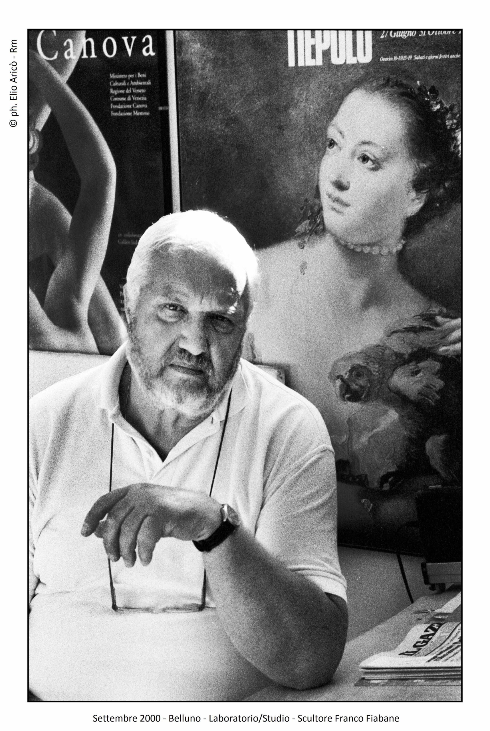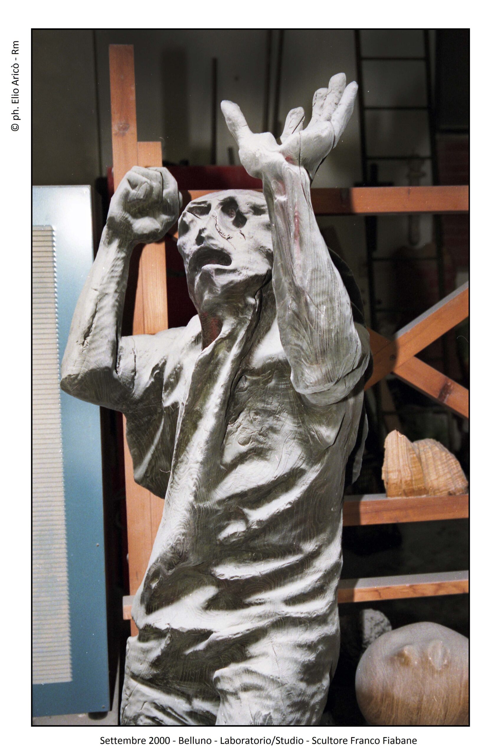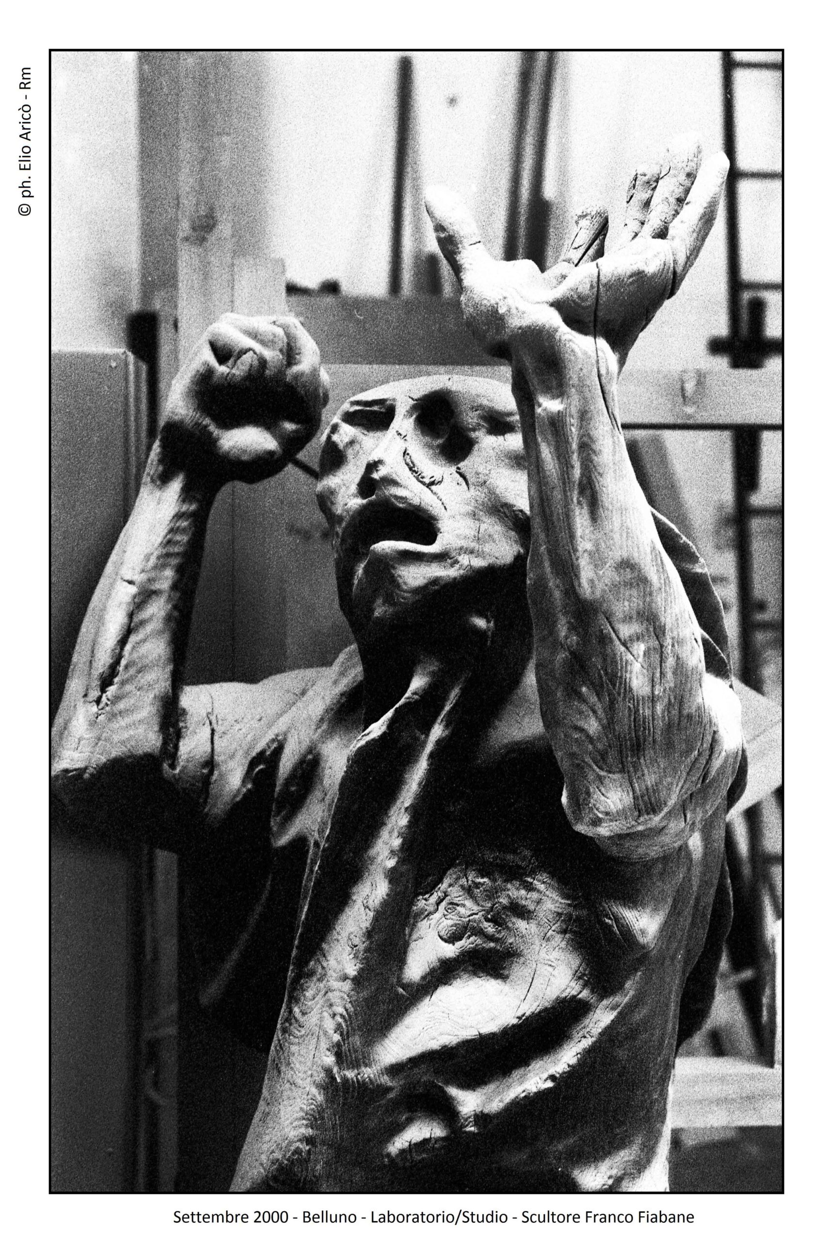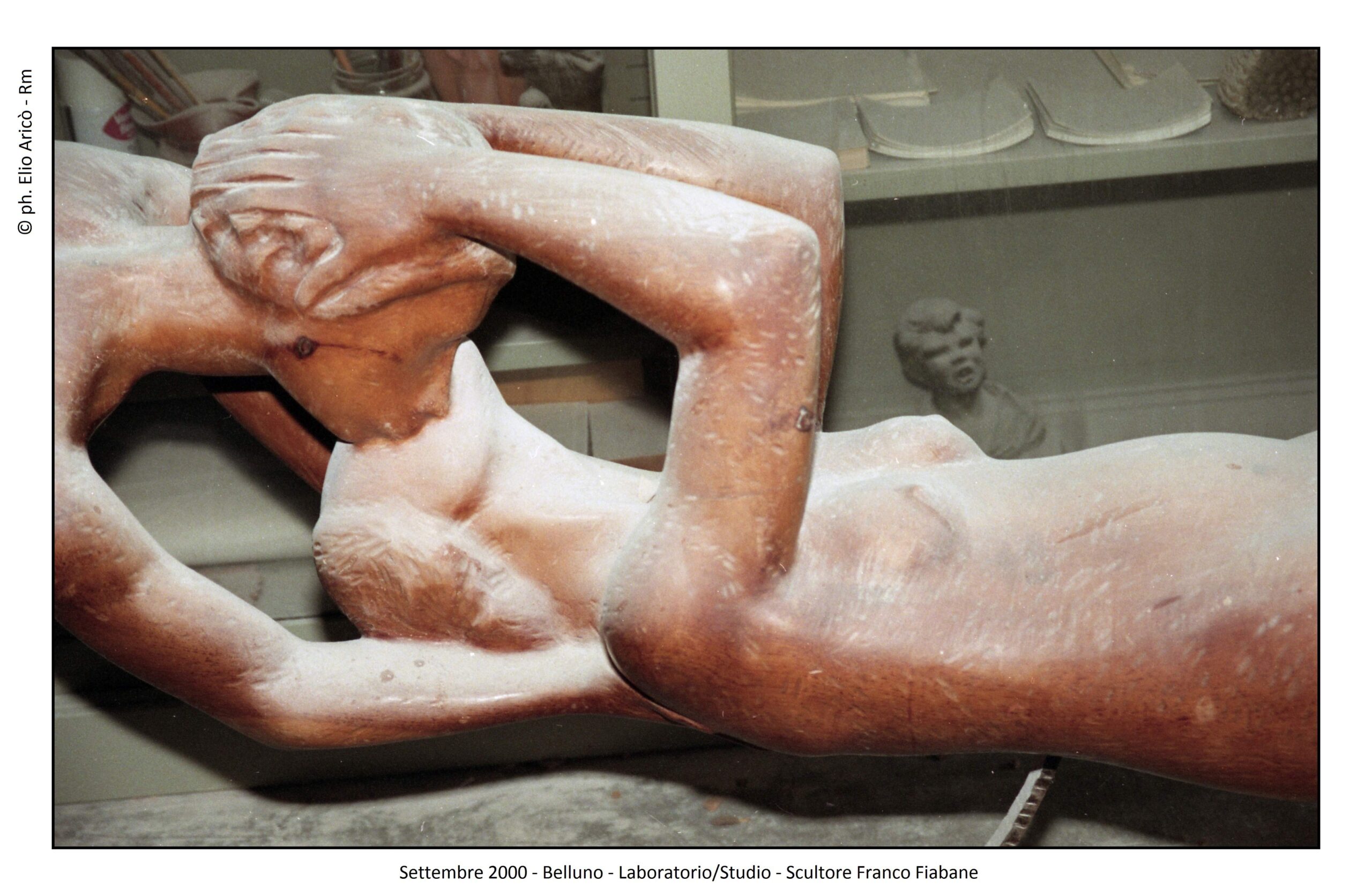 Presentare oggi le fotografie che il fotografo Elio Aricò realizzò nell’estate del 2015 all’artista bellunese Franco Fiabane significa riaprire una stagione carica di emozioni difficili da raccontare. Fu un’estate iniziata con entusiasmo, tra progetti, visite culturali e il desiderio di condividere arte e bellezza, e conclusa purtroppo in una tragedia che colpì profondamente la famiglia e gli amici. Il 10 agosto 2015 Aricò incontrò Franco nel suo laboratorio. Senza impegni urgenti, l’artista si era dedicato alla modellazione di alcune terracotte, opere delicate che confermavano la sua straordinaria versatilità. Tra gli scatti, “Susanna e i vecchioni”, il mascherone di Bacco, allegro e drammatico insieme, e infine la testa dell’Angelo della Chiesa del Nevegal, staccata dal corpo. Un’immagine che, riletta oggi, assume il valore silenzioso di un presagio.