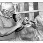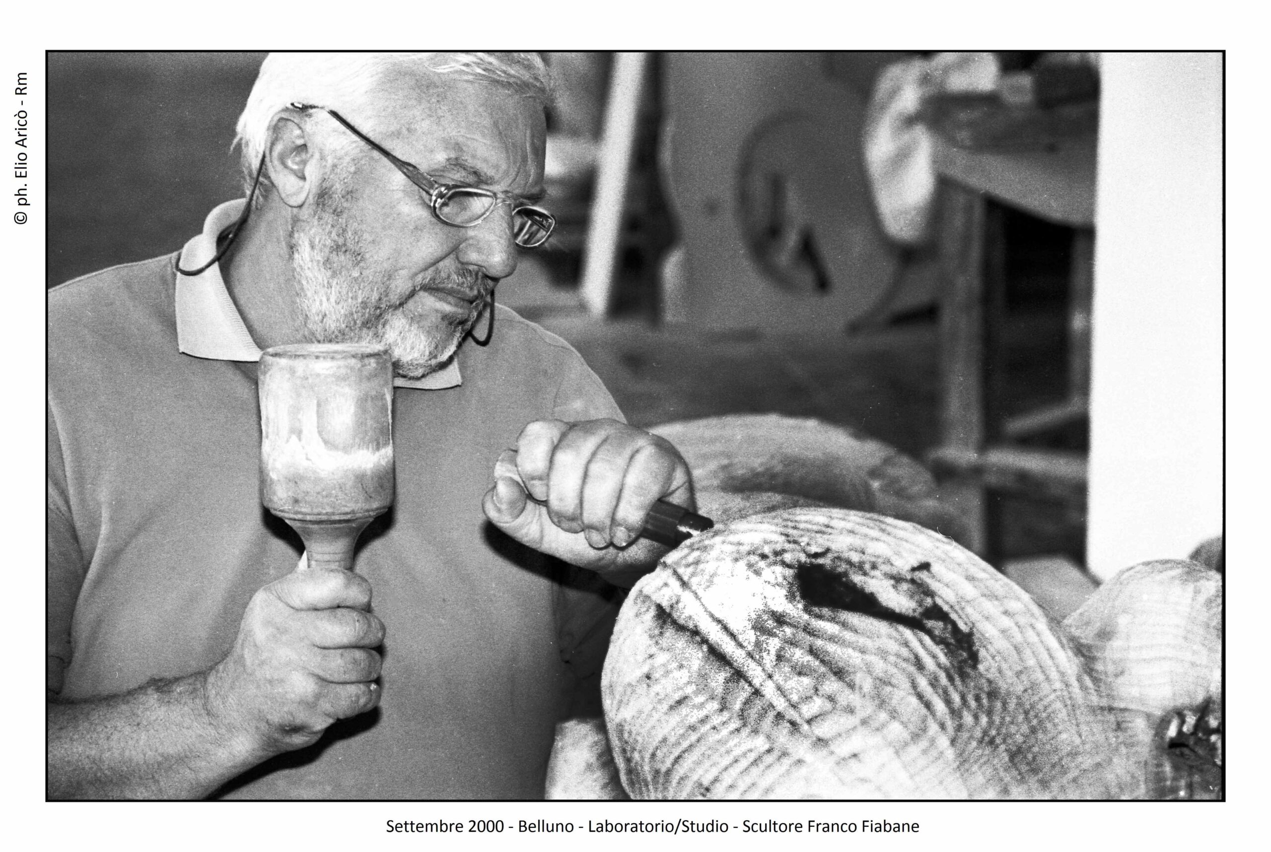 Presentare oggi le fotografie che il fotografo Elio Aricò realizzò nell’estate del 2015 all’artista bellunese Franco Fiabane significa riaprire una stagione carica di emozioni difficili da raccontare. Fu un’estate iniziata con entusiasmo, tra progetti, visite culturali e il desiderio di condividere arte e bellezza, e conclusa purtroppo in una tragedia che colpì profondamente la famiglia e gli amici. Il 10 agosto 2015 Aricò incontrò Franco nel suo laboratorio. Senza impegni urgenti, l’artista si era dedicato alla modellazione di alcune terracotte, opere delicate che confermavano la sua straordinaria versatilità. Tra gli scatti, “Susanna e i vecchioni”, il mascherone di Bacco, allegro e drammatico insieme, e infine la testa dell’Angelo della Chiesa del Nevegal, staccata dal corpo. Un’immagine che, riletta oggi, assume il valore silenzioso di un presagio.