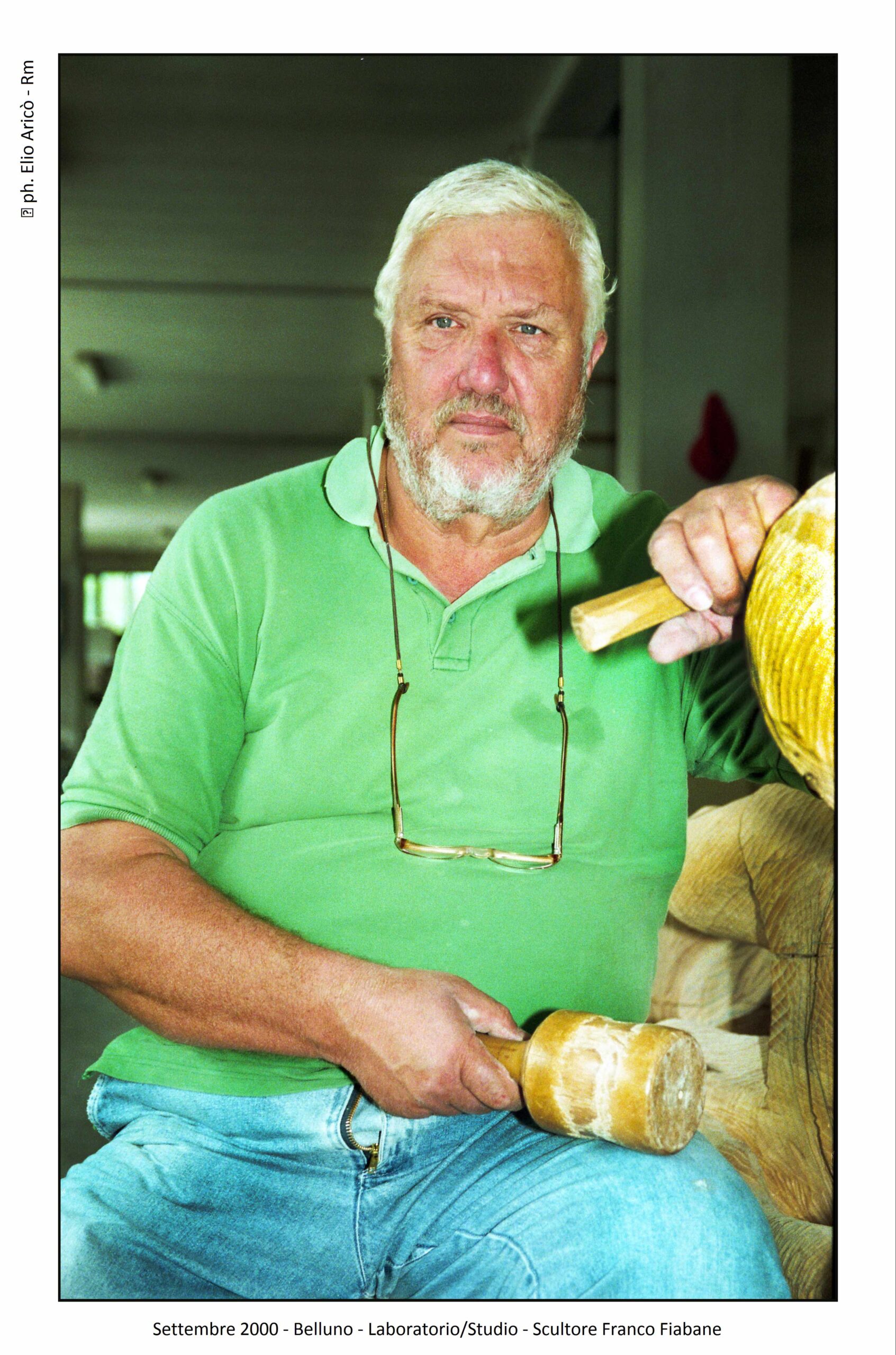 Le fotografie di Elio Aricò testimoniano la vitalità artistica di Franco Fiabane. Tra le immagini più significative quelle dell’11 agosto 2015, quando Franco si fece accompagnare a Puos d’Alpago per fotografare un leone in scultura lignea, realizzato su commissione per un amico collezionista appassionato di caccia grossa. Uno scatto lo ritrae in piena forma mentre aiuta a posizionare l’opera per le foto. Un gesto semplice, ma che racconta la sua energia, l’attenzione ai dettagli e il legame profondo con le proprie creazioni. Immagini che non documentano solo un’opera, ma un artista al lavoro, nel pieno della sua passione.