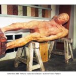 Altra importante serie di immagini, riapre il dialogo silenzioso tra l’artista e la sua opera. Elio Aricò testimonia il lavoro di Franco Fiabane, documentando una fase centrale e delicata della lavorazione di un Nudo femminile in legno, iniziato nel 2012 e portato avanti negli anni come un corpo che cresce, muta, prende coscienza di sé. Le immagini raccontano la fase di rifinitura dell’opera, quella in cui la materia perde l’asprezza iniziale e si avvicina alla pelle, alla curva, alla tensione del gesto. È qui che, come osserva Aricò, la scultura accentua la propria carica erotica, un erotismo mai urlato ma inscritto nel rapporto antico tra mano, legno e forma umana. In alcune sequenze fotografiche, Fiabane appare quasi avvolgere la propria creazione in un abbraccio. Il lavoro sul Nudo femminile conferma: il corpo non come oggetto, ma come luogo di tensione espressiva, di memoria e di desiderio, scolpito nella resistenza del legno.