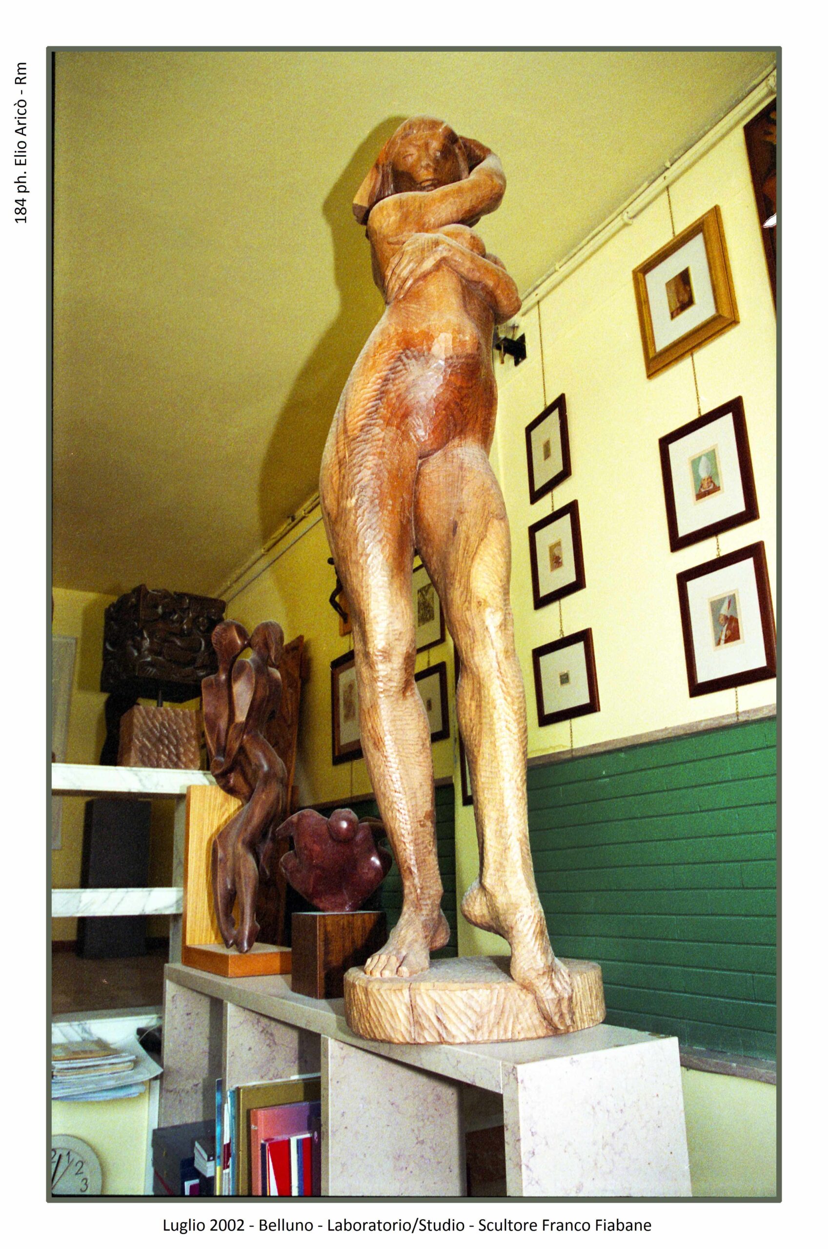 Lì, su un lato, era esposto un nudo ligneo di donna: capelli a caschetto, una presenza al tempo stesso elegante ed evocativa. I dettagli, scolpiti con solchi decisi, esaltavano un realismo anatomico di cui Franco era maestro indiscusso. Era impossibile non cogliere un richiamo estetico alla “Valentina” di Crepax. Alla mia osservazione, fatta con tono scherzoso, Franco rispose con un sorriso sornione, lasciandomi sospeso in quel dubbio sottile.