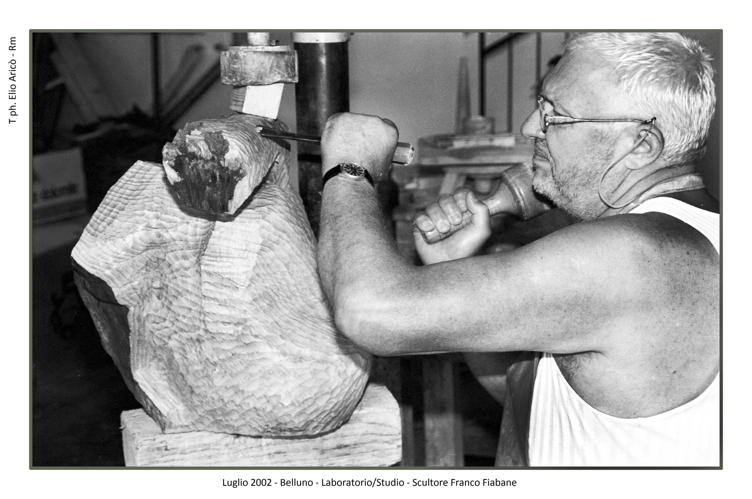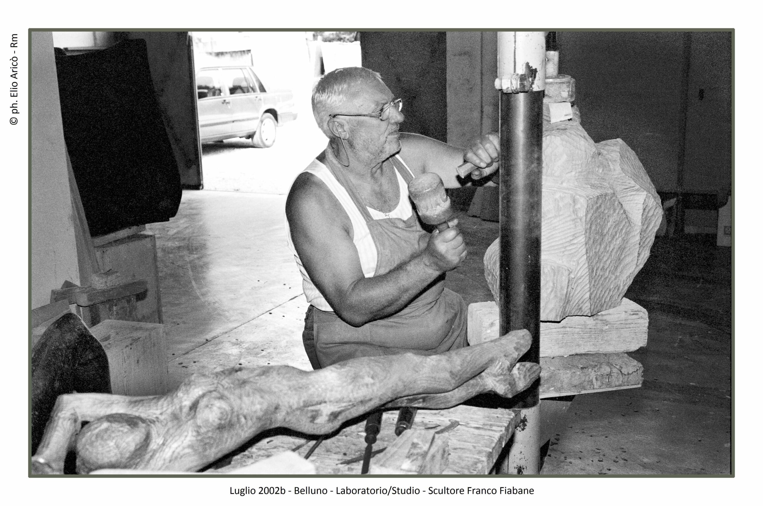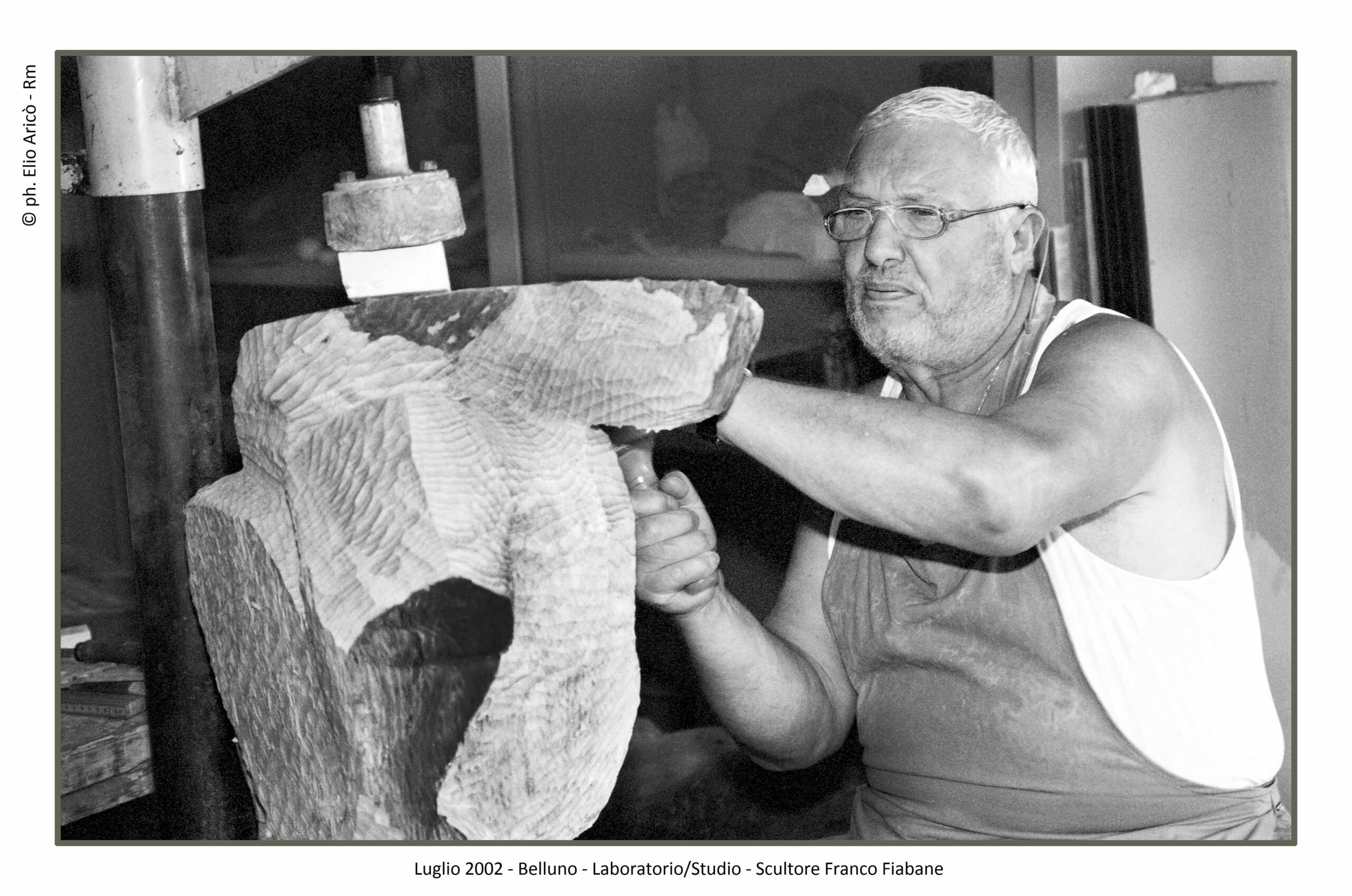 Le fotografie di Elio Aricò testimoniano la vitalità artistica di Franco Fiabane. Tra le immagini più significative quelle dell’11 agosto 2015, quando Franco si fece accompagnare a Puos d’Alpago per fotografare un leone in scultura lignea, realizzato su commissione per un amico collezionista appassionato di caccia grossa. Uno scatto lo ritrae in piena forma mentre aiuta a posizionare l’opera per le foto. Un gesto semplice, ma che racconta la sua energia, l’attenzione ai dettagli e il legame profondo con le proprie creazioni. Immagini che non documentano solo un’opera, ma un artista al lavoro, nel pieno della sua passione.