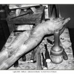 Le immagini di Elio Aricò raccontano non solo l’opera compiuta, ma anche il processo creativo: Fiabane colto nel gesto lento e concentrato dell’incisione, mentre definisce i volumi, leviga, approfondisce le ombre. È uno sguardo intimo dentro il laboratorio dell’artista, dove la scultura prende forma attraverso il rapporto fisico con il legno.