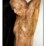 Lì, su un lato, era esposto un nudo ligneo di donna: capelli a caschetto, una presenza al tempo stesso elegante ed evocativa. I dettagli, scolpiti con solchi decisi, esaltavano un realismo anatomico di cui Franco era maestro indiscusso. Era impossibile non cogliere un richiamo estetico alla “Valentina” di Crepax. Alla mia osservazione, fatta con tono scherzoso, Franco rispose con un sorriso sornione, lasciandomi sospeso in quel dubbio sottile.