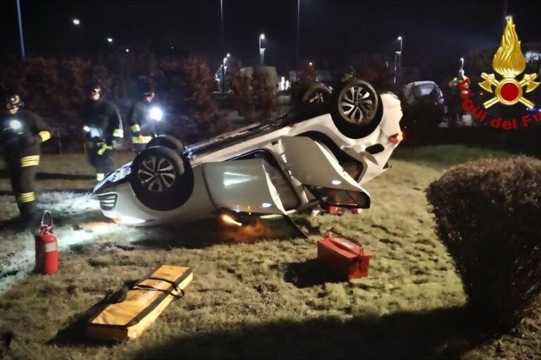 INCIDENTE NOTTURNO A SEDICO, AUTO SI RIBALTA IN VIA FELTRE