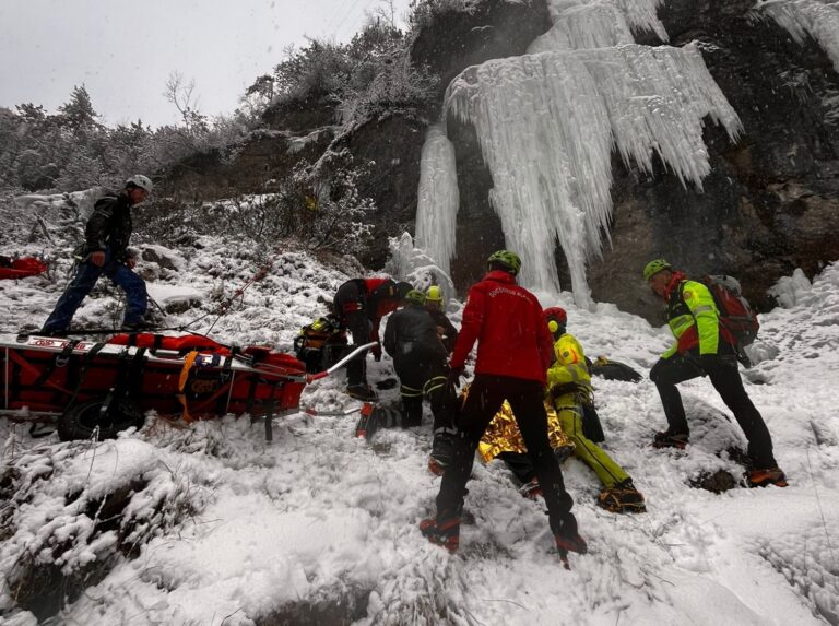 ********* PERAROLO DI CADORE Sono gravi le conizioni di un iceclimber, precipitato da una…