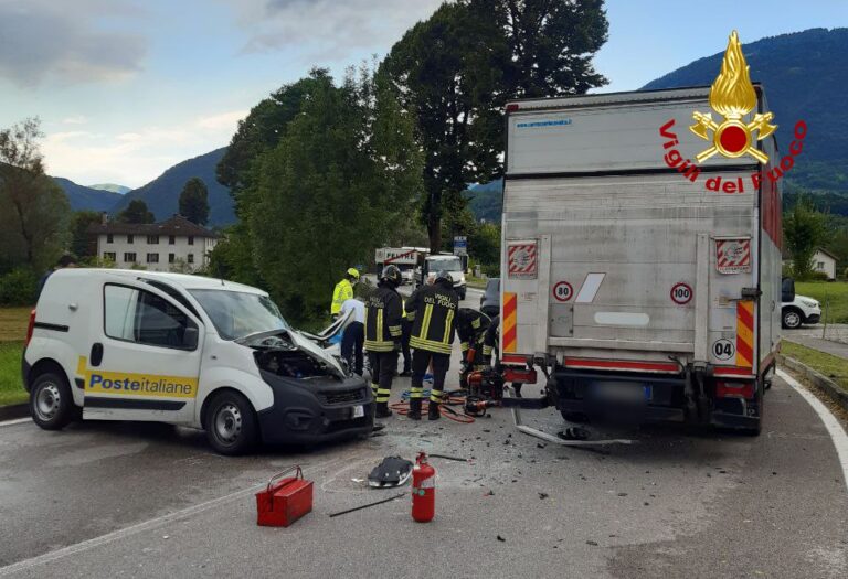 INCIDENTE A CULIADA TRA UN FURGONCINO DELLE POSTE E UN CAMION: UN FERITO