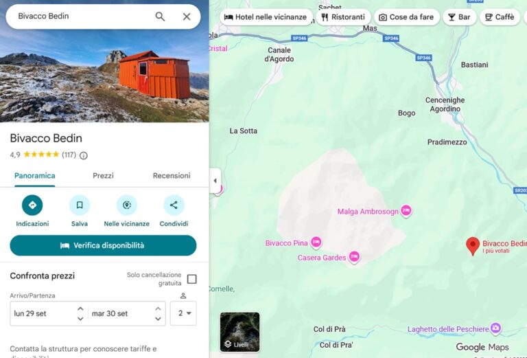 IL BIVACCO BEDIN…PER GOOGLE UNA STRUTTURA RICETTIVA