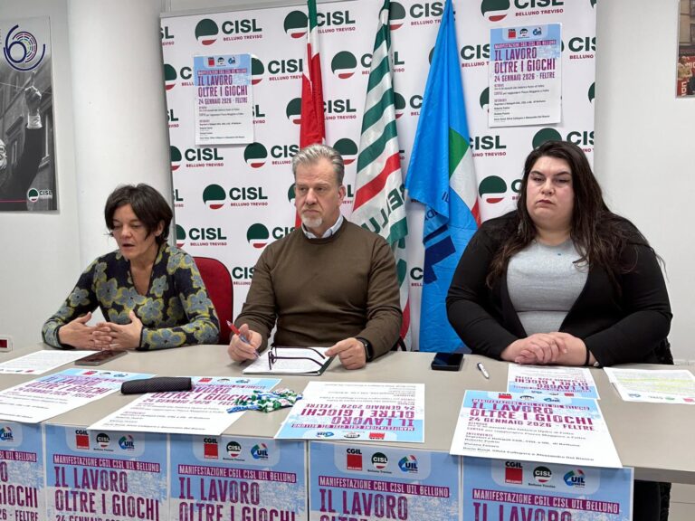 “IL LAVORO OLTRE I GIOCHI”: SINDACATI IN PIAZZA A FELTRE PER IL FUTURO OCCUPAZIONALE DEL BELLUNESE