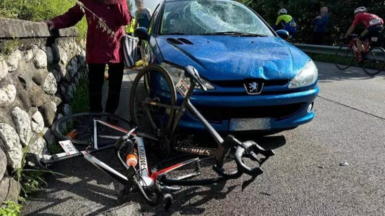 INCIDENTE ALLA SPORTFUL DOLOMITI RACE. UN’AUTO CENTRA QUATTRO CICLISTI