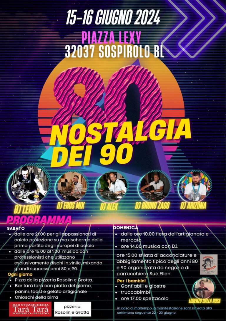 80 NOSTALGIA DEI 90…OGGI E DOMANI A SOSPIROLO