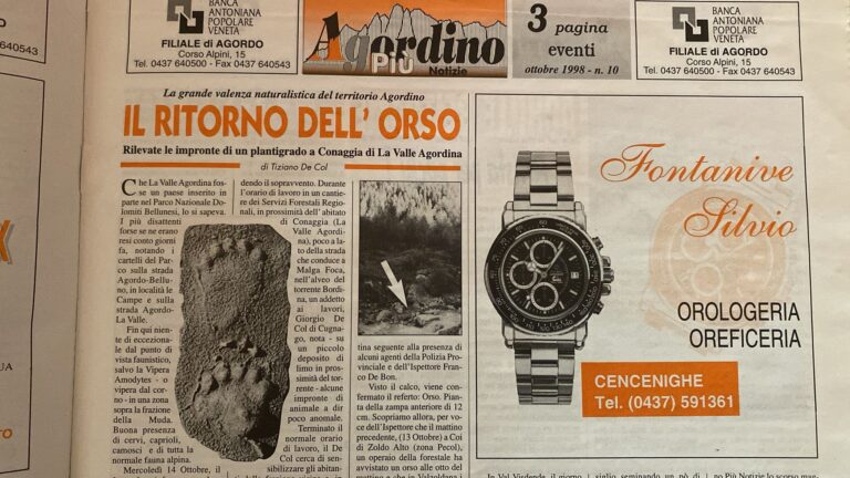 ORSO E AGORDINO, L’AVVISTAMENTO A LA VALLE NELL’OTTOBRE DEL 1998