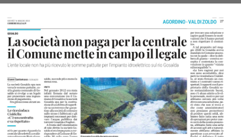 LA GOSALDA SPA NON PAGA E IL COMUNE DI GOSALDO FA CAUSA