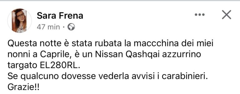Appello per il Ritrovamento dell’Auto Rubata a Caprile