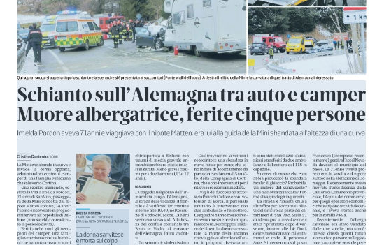 INCIDENTE MORTALE A CORTINA, VITTIMA UNA DONNA, FERITI DUE BAMBINI