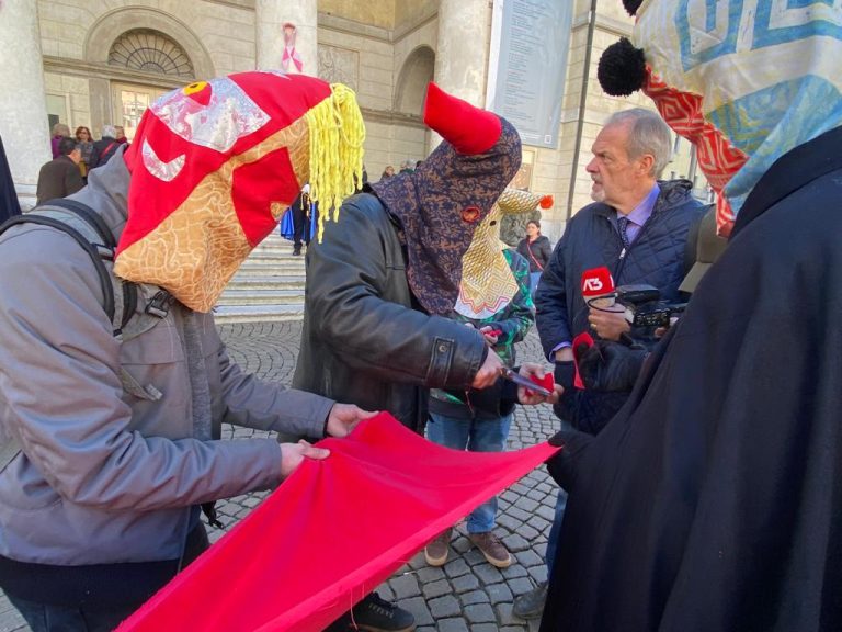 BELLUNO L’interpretazione del mantello di San Martino, con la compagnia dell’artista DEM, nell’ambito degli eventi “Florofilla”…