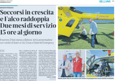 BELLUNO Falco 2, il secondo elicottero “estivo” dell’elisoccorso bellunese, si è alzato dall’aeroporto Dell’Oro…