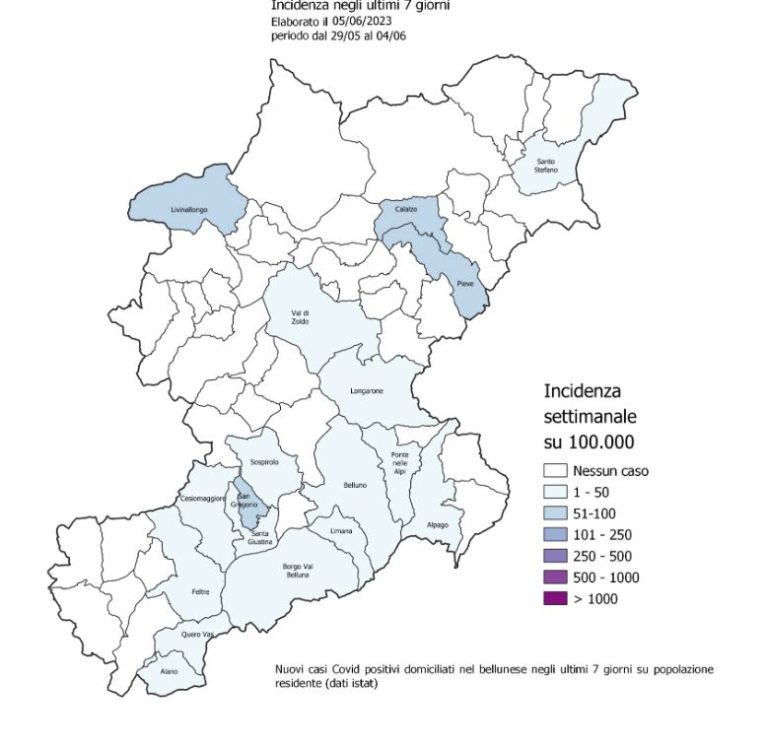 BELLUNO Ulteriore forte raffreddamento epidemico, con un’incidenza settimanale pari a 24 casi su 100.000 abitanti…