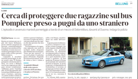 BELLUNO Un vigile del fuoco bellunese, preso a sberle e pugni da un giovane extracomunitario…
