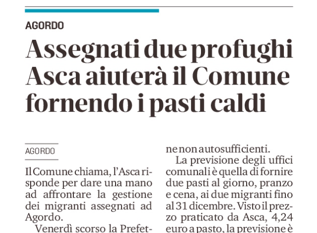 Nel 2016, durante una ondata di sbarchi, Agordo era stato l’unico dei Comuni della vallata…