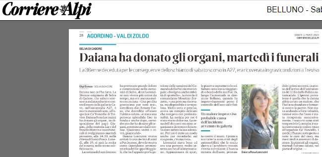SELVA DI CADORE Martedi l’ultimo saluto a Daiana Rosa, nella chiesa di Santa Fosca. Daiana…