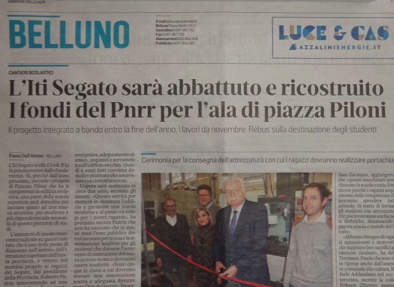 ANNUNCIO DEL PRESIDENTE DELLA PROVINCIA ROBERTO PADRIN: L’EDIFICIO DELL’ISTITUTO INDUSTRIALE SEGATO PRESTO ABBATTUTO