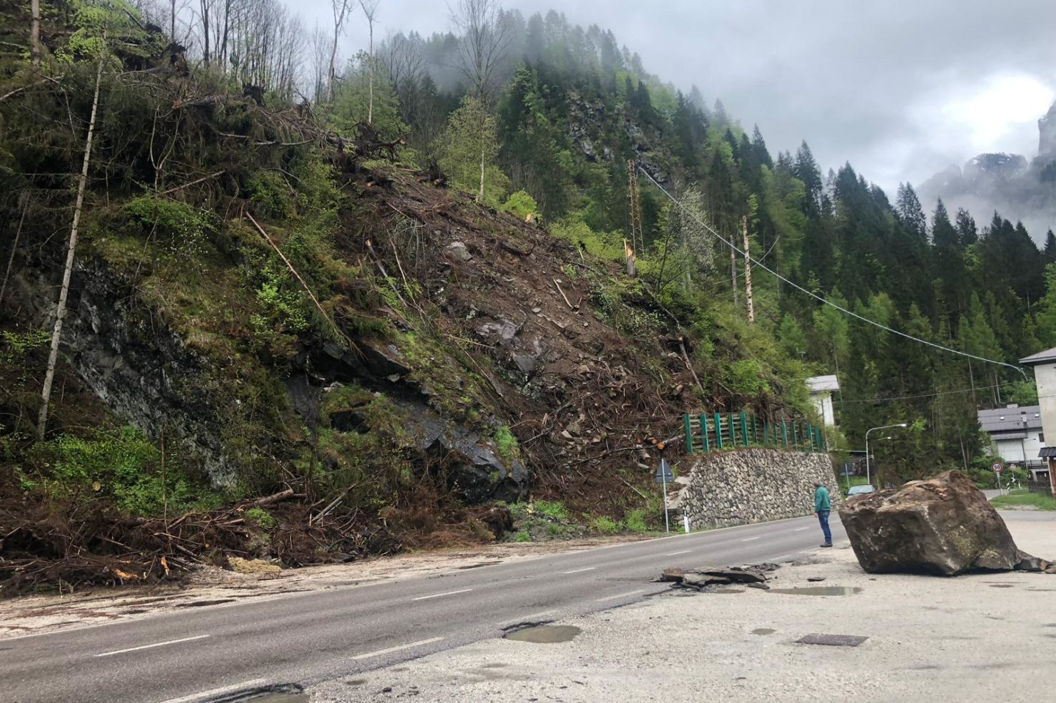 STAMANE ALLE 730 UN GROSSO MASSO E’ PIOMBATO SULLA REGIONALE 203 AGORDINA IN LOCALITA’…