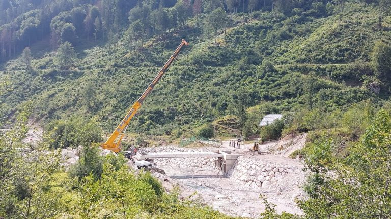 POSIZIONATO IL NUOVO PONTE SUL TORRENTE TEGNAS IN VALLE DI SAN LUCANO