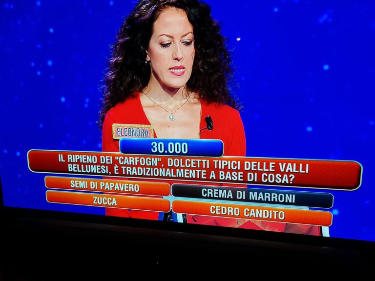 *** L’immagine mostra una concorrente in un quiz televisivo alle prese con una domanda sui…