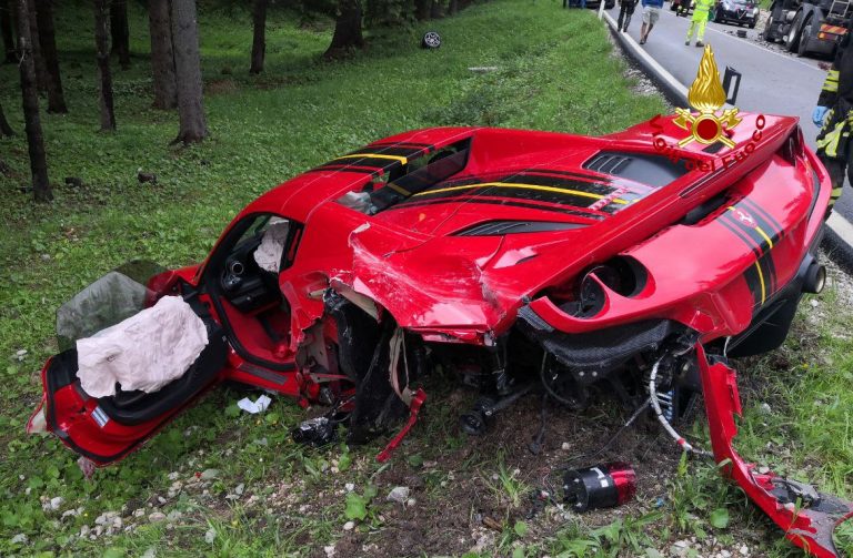 CIMABANCHE LA ROSSA FERRARI FINISCE IN MEZZO ALL’ERBA, SENZA UNA RUOTA