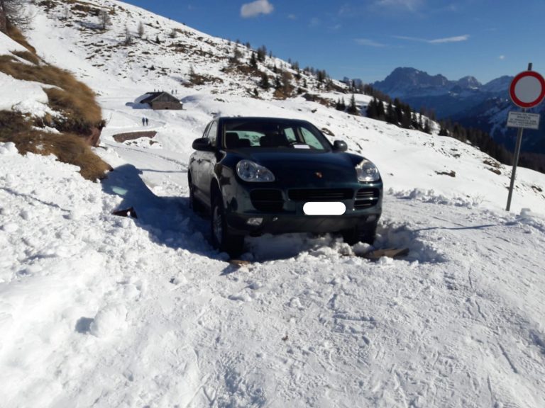 PASSO VALLES La notte scorsa un Porche Cayenne, con alla guida un veneto, è rimasto bloccato…
