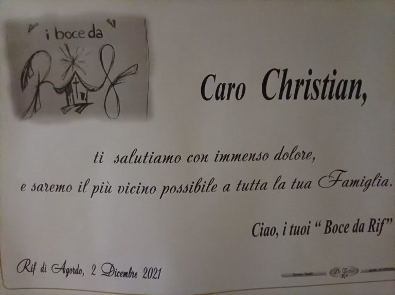 DOLORE SENZA FINE PER L’IMPROVVISA SCOMPARSA DI CHRISTIAN