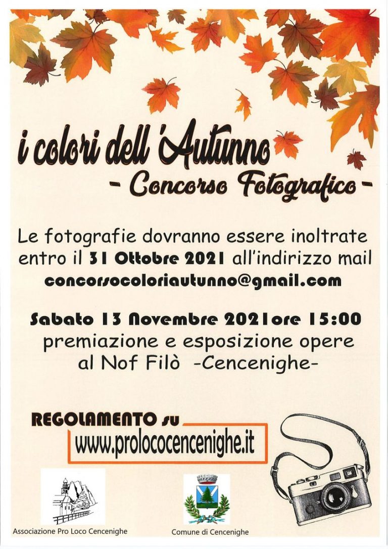 CENCENIGHE La proloco ha indetto un concorso fotografico sui colori della stagione appena iniziata. Le…