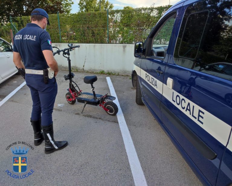 LA POLIZIA LOCALE DI BELLUNO SEQUESTRA UN MONOPATTINO ELETTRICO FUORI POTENZA