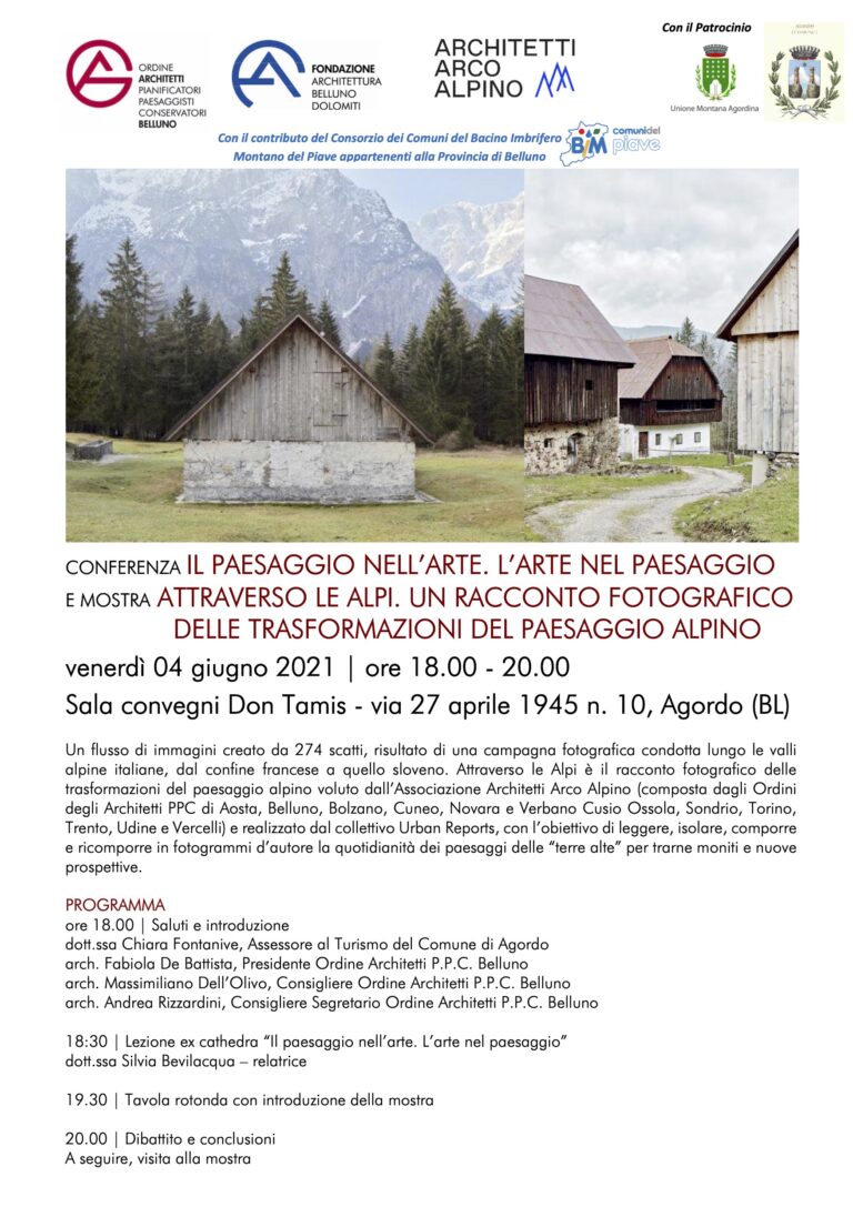 VENERDI’ IN SALA DON TAMIS AD AGORDO LA CONFERENZA “IL PAESAGGIO NELL’ARTE. L’ARTE NEL PAESAGGIO”