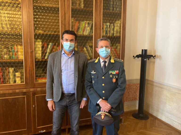 VISITA ISTITUZIONALE A PALAZZO PILONI. IL PRESIDENTE DELLA PROVINCIA SALUTA IL COMANDANTE PROVINCIALE DELLA GUARDIA DI FINANZA
