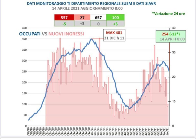 le tabelle illustrano l’andamento dell’occupazione di posti letto Covid nel sistema sanitario della Regione…