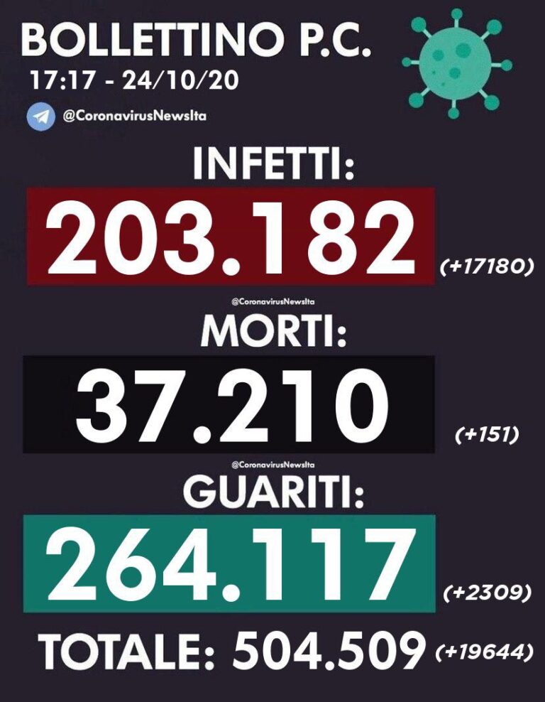24 OTTOBRE INFETTI + 17180 MORTI + 151 GUARITI + 2309 23 OTTOBRE INFETTI +…