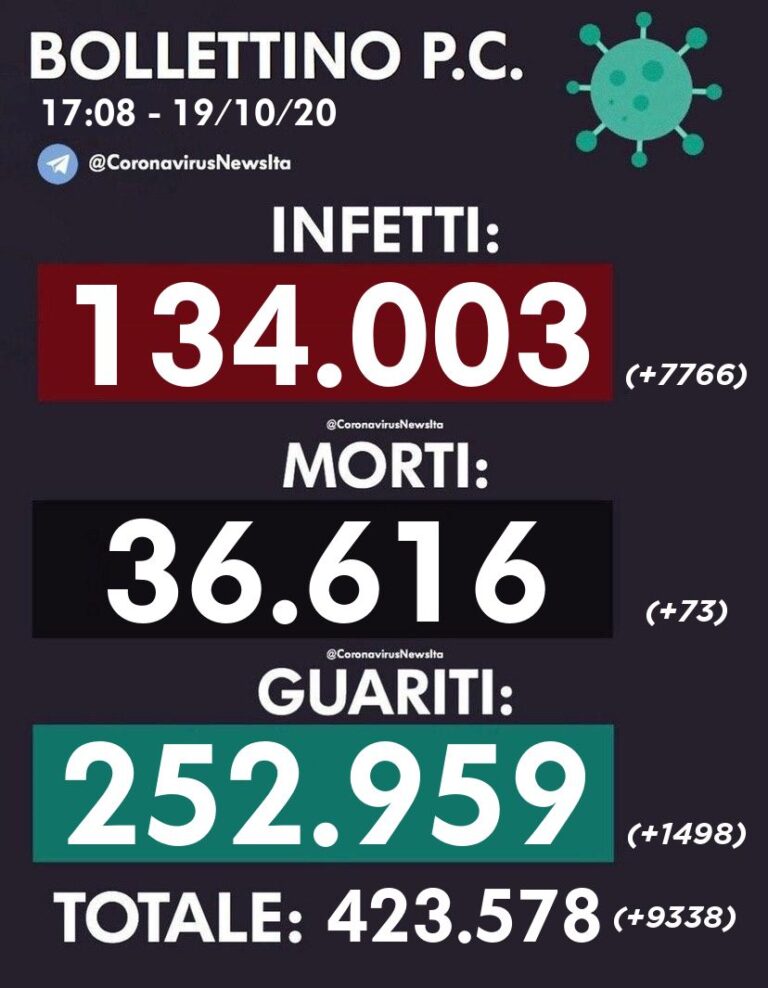 19 OTTOBRE INFETTI + 7766 MORTI + 73 GUARITI + 1498 18 OTTOBRE INFETTI +…