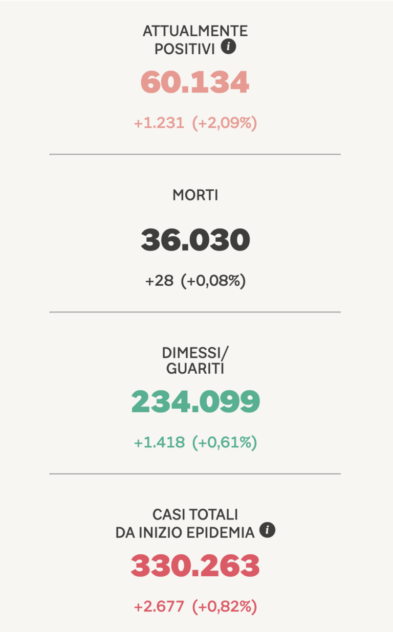 06 OTTOBRE INFETTI + 1231 MORTI + 28 GUARITI + 1418 (dati nazionali dal sito…