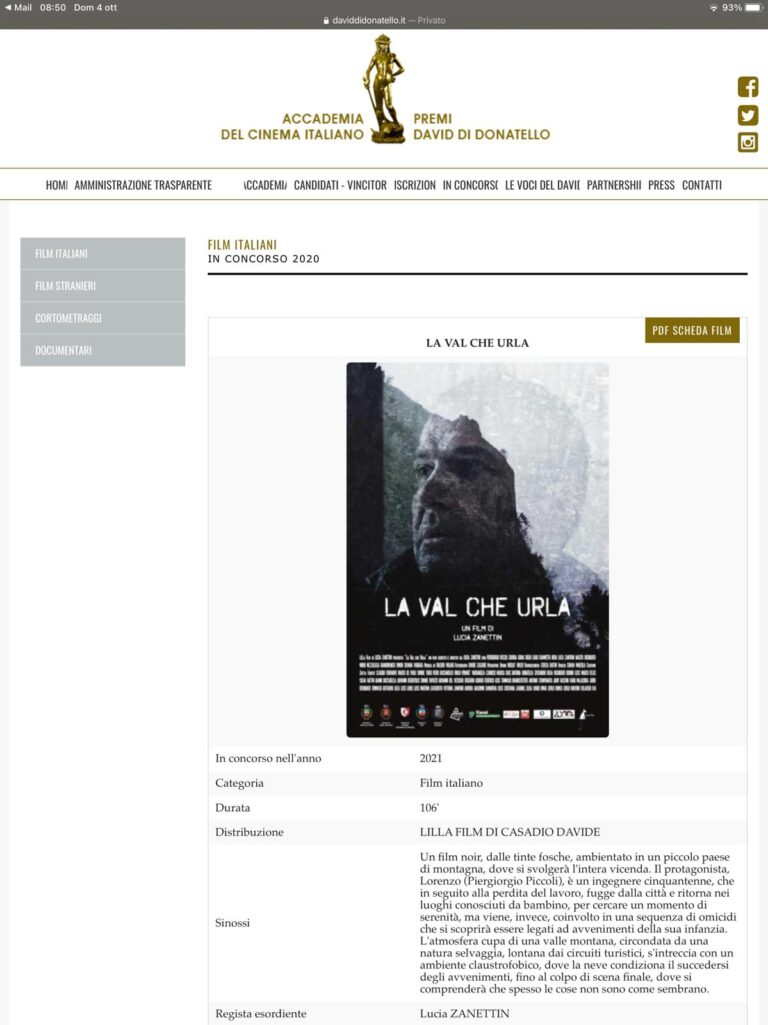 LA VAL CHE URLA AL “DAVID DI DONATELLO”