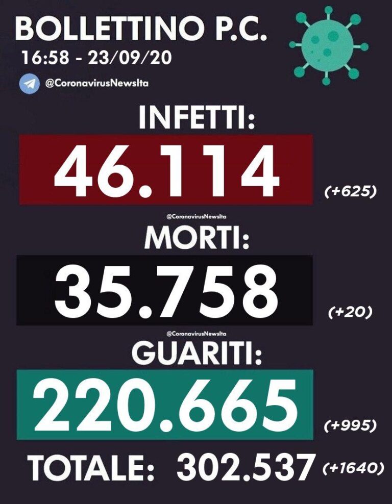23 SETTEMBRE INFETTI + 625 MORTI + 20 GUARITI + 995 22 SETTEMBRE INFETTI +…