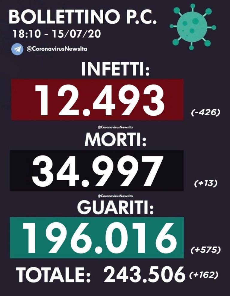 15 LUGLIO INFETTI – 426 MORTI + 13 GUARITI + 575 14 LUGLIO INFETTI –…