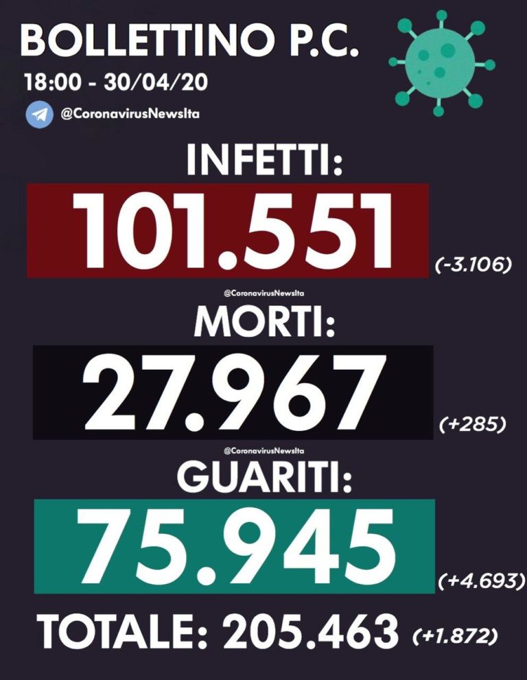 AGGIORNAMENTO NAZIONALE DEL 30 APRILE
