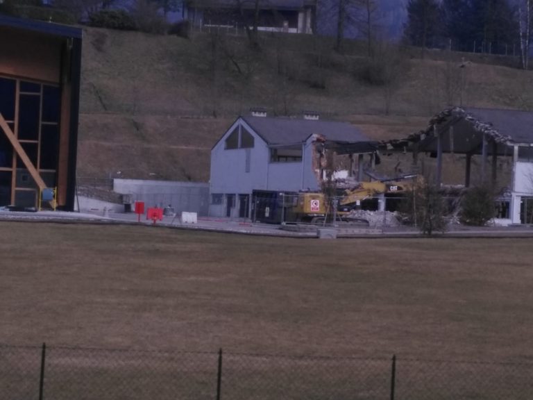 AGORDO Sono già iniziati i lavori di ampliamento del PalaLuxottica. Demolizione dell’attuale hangar in prossimità…