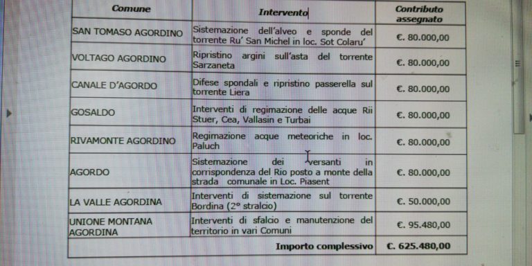 OLTRE 600 MILA EURO PER LAVORI IDROGEOLOGICI IN VALLATA