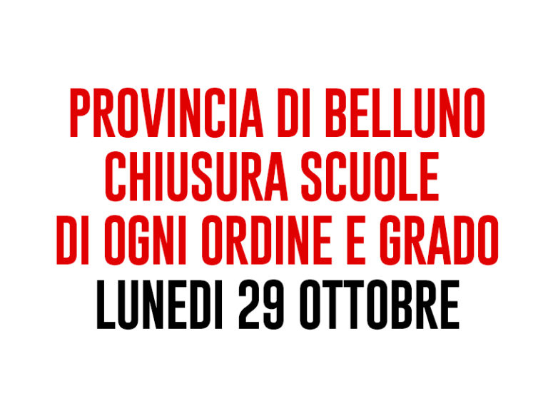 PROVINCIA DI BELLUNO – CHIUSURA SCUOLE DI OGNI ORDINE E GRADO – LUNEDI 29 OTTOBRE
