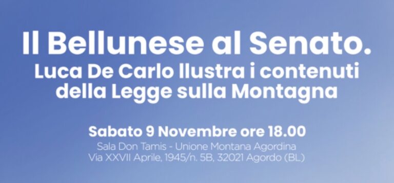 IL BELLUNESE AL SENATO: IL DDL MONTAGNA CON IL SENATORE LUCA DE CARLO – LA DIRETTA